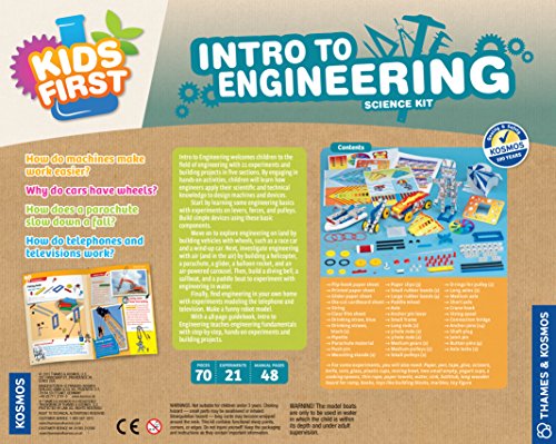 -. Feature : Intro to Engineering welcomes young children to the field of engineering with 25 experiments and building projects in five sections. / By engaging in hands-on activities, children will learn how engineers apply their scientific and technical knowledge to design machines and devices. / Build a helicopter, a pinwheel, a parachute, a glider, a balloon rocket, and an air-powered carousel. / Build a diving bell, a sailboat, and a paddle boat to experiment with engineering in water. / Find engineering in your own home with experiments modeling the telephone and television.