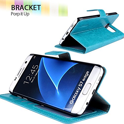 Galaxy S7 Edge Case, Zizzon Multi-Function Heavy Duty Protective Wallet Case(Blue)