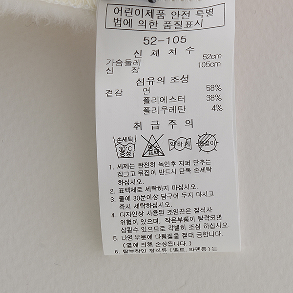 세탁방법 및 취급시 주의사항 : 단독 드라이크리닝 또는 뒤집어서 단독 손세탁을 권장 합니다 취급시 주의사항:핫픽스,자수,스팽글 등의 장식이 있는 경우 장식의 손상을 막기위해 뒤집어서 단독 세탁하여 주십시오 ※데님상품은 단독으로 세탁하시고, 물빠짐/이염에 주의하여 세탁하시기 바랍니다.충전재 특성상 바늘구멍에서 털이 나올수 있습니다. 제품에 따라 마찰에의해 보푸라기가 다소 발생할수있으니 주의하여주십시오 열이나 불꽃에 가까이 가면 녹거나 화재의 위험이 있습니다. 물세탁 제품인경우 새제가 제품에 직접 닿을경우 탈색이 될수있으니 반드시 새제를 용해한후 제품을 담그시기바랍니다.물세탁 제품인경우 표백제나 표백성분이 있는 새제는 사용하지마십시오 니트 제품인경우 그늘에서 모양을 가지런히 하여 뉘어서 건조하십시오. 라벨을 꼭 참조 해주세요