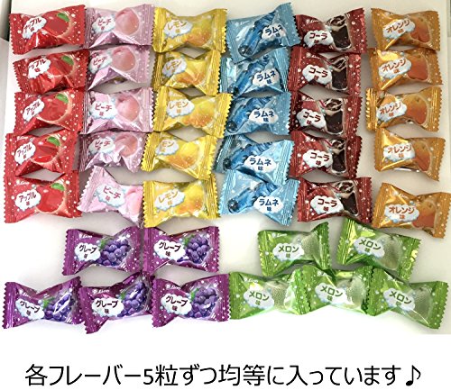 原材料:砂糖、水飴、濃縮果汁(アップル、オレンジ、グレープ、レモン、メロン、ピーチ)、植物油脂、酸味料、重曹、香料、トレハロース、着色料(カラメル、クチナシ、アントシアニン、紅麹、カロチノイド)、乳化剤、(原材料の一部に大豆を含む)