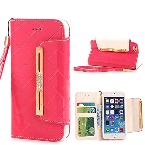 ACO-UINT iPhone SE 5s Wallet Case,iPhone SE 5s 5 Case,[Grid Pattern] Deluxe PU Leather Wallet Case,Folio Flip Bling Diamond Closure Cover Case for iPhone SE 5s 5 Pink