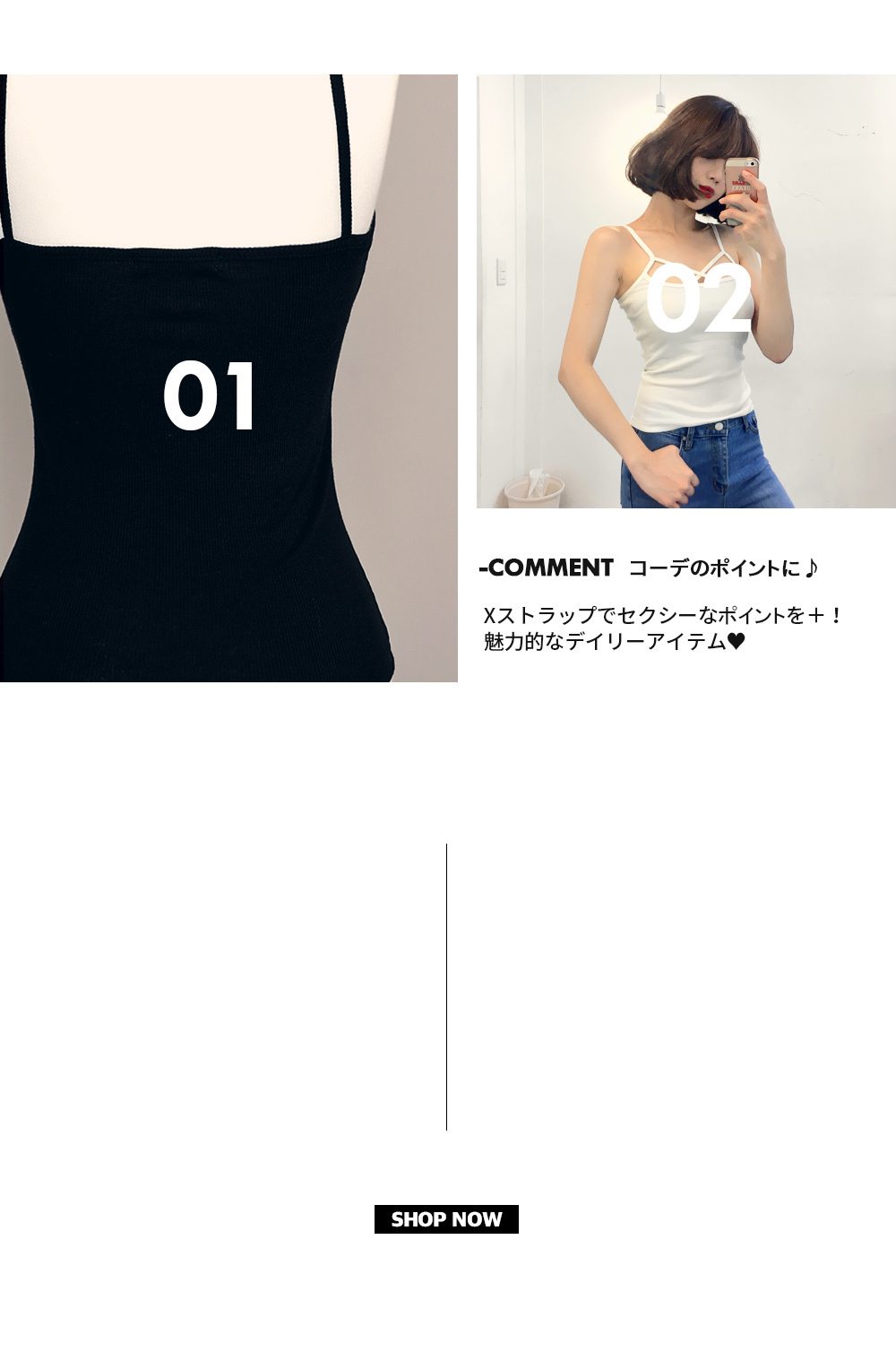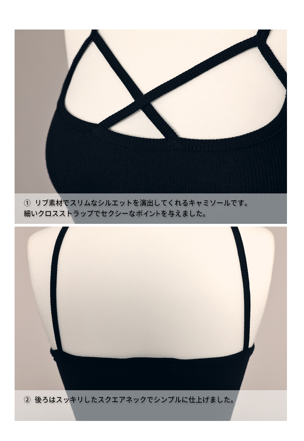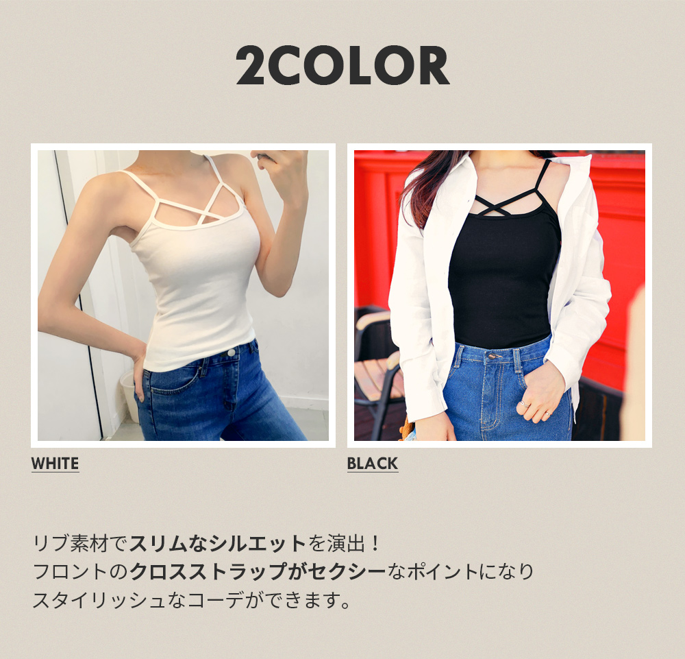 クロスされた肩紐がセクシーでコーデのポイントになるキャミソール☆アウターやシャツとレイヤードしてもかわいいアイテムです♪