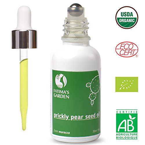 ONE SUPER INGREDIENT : Prickly Pear Seed Oil (A.K.A. Barbary Fig Oil, Cactus Seed oil, Indian Fig Oil) , USDA and ECOCERT Certified Organic, 100% pure, virgin, cold pressed, unrefined, fast absorbing | packaged in a painted glass bottle to protect the oil from sunrays, with a stainless steel roll on ball for hygiene, economy of this precious oil and ease of use under the eyes and on the wrinkles | sustainably & ethically sourced from Berber women in Moroccan Cooperative