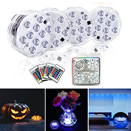 Submersible LED Lights 4 Pack-Battery Powered IR Remote Controlled RGB Color Changing Waterproof Underwater Pool Light