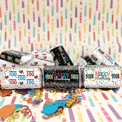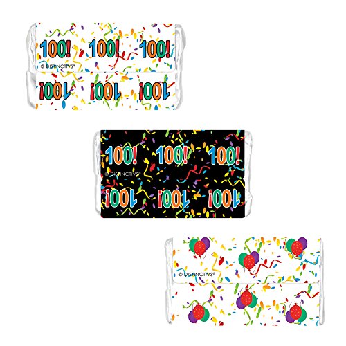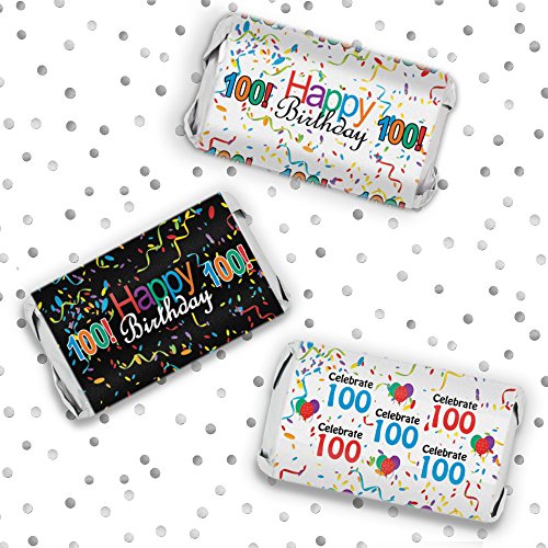 100th Birthday Party Favors - Miniatures Candy Bar Wrapper Stickers - Multi-Colored (54 Count)