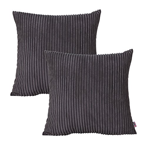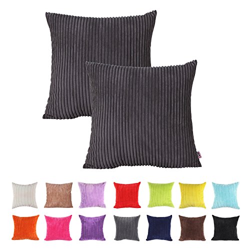 Queenie - 2 Pcs Solid Color Corduroy Decorative Pillowcase Cushion Cover for Sofa Throw Pillow Case Available in 14 Color 5 Sizes (15.75 x 15.75 Inch (40 x 40 Centimeter), Dark Grey)