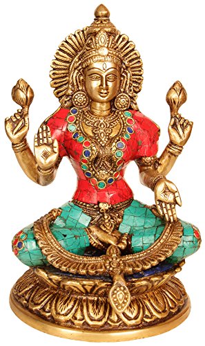 Aone India 9" Gorgeous Goddess Lakshmi- Hindu Deity of Wealth Brass Statue- Good Luck Prosperity Anniversary Easter Gift + Cash Envelope (Pack Of 10)