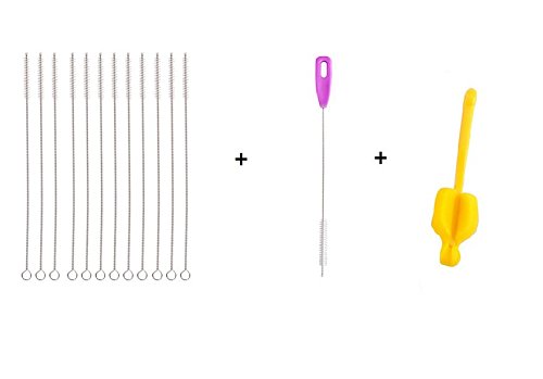 VALUE PACK - Package Includes: 12Pcs Brushes (10 x Drinking Straws Brushes(17.5cm); 1 x Pink Handle Straw Brush(18cm); 1 x Random Color Sponge Nipple Brush)