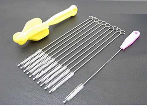 Cindy&Will 12Pcs Cleaning Brushes Value Set -- Includes 10Pcs Nylon Bristles Drinking Straws Cleaner Brushes, 1Pcs Pink Grip Straw Brush, 1Pcs Random Color Sponge Nipple Brush