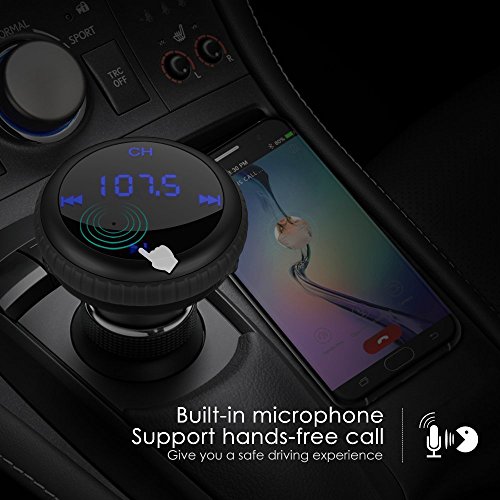 Easy to use: Simply plug into cigarette lighter socket. Control directly as an FM transmitter. Volume, frequency and song control through turn knob, Bluetooth hands-free calling, charging for your phone.