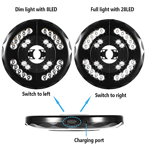 - 2 Optional Brightness(28LED/8LED), set dim light with 8LED on, full light with 28LED on, perfect for nightly outdoor activities.