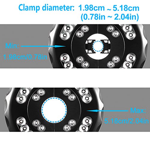 - Cordless design with flexible auto adjustable clamp, easy for installation; Pole mounted fit pole size from 0.8 inch to 2 inch in diameter, suitable for most patio umbrellas.