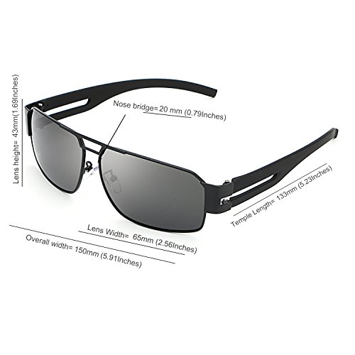 MEASUREMENT - Lens Height: 44mm (1.73 inches) Lens Width: 64mm (2.52 inches) Nose Bridge: 20mm (0.79 inches) Temple Length: 135mm (5.31 inches) Frame Length: 150mm (5.9 inches)