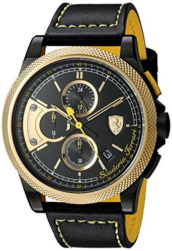 -. Binding : Watch -. Brand : Ferrari -. Department : mens -. EAN : 0885997188661 -. Feature : Sporty chronograph engine accompanied by a yellow contrast stitched band / Durable mineral crystal protects watch from scratches / Japanese-quartz Movement / Case Diameter: 46mm / Water Resistant To 165 Feet -. Label : Movado Group Inc. dba Scuderia Ferrari -. Manufacturer : Movado Group Inc. dba Scuderia Ferrari -. Model : 0830314 -. MPN : 0830314 -. PackageQuantity : 1 -. PartNumber : 0830314 -. ProductGroup : Watch -. ProductTypeName : WATCH -. Publisher : Movado Group Inc. dba Scuderia Ferrari -. Studio : Movado Group Inc. dba Scuderia Ferrari -. Title : Ferrari Men's 'Formula Italia S' Quartz Stainless Steel and Leather Casual Watch, Color:Black (Model: 0830314) -. UPC : 885997188661