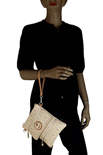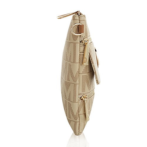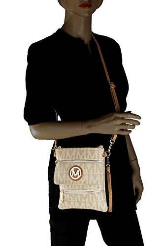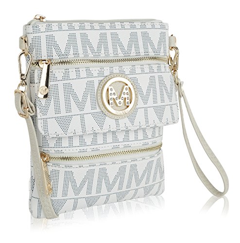 MKF Collection Mandy M Signature Multi Zipper Pockets Handbag With Detachable Wristlet Crossbody Bag by Mia K Farrow