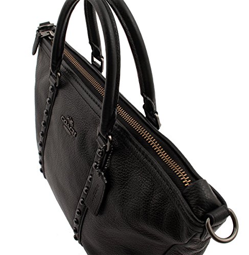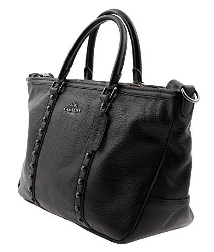 -. Brand : -. Color : Black -. Department : womens -. EAN : 0889532690473 -. Feature : Refined Pebble Leather / Inside Zip and Multifunction Pockets / Zip Closure, Fabric Lining / Top Handles with 4.5" Drop, Long Strap with 21" Drop for Shoulder or Crossbody Wear / 11" (L) x 8.5" (H) x 3.75" (W) -. Model : F57513 QB/BK -. ProductGroup : Shoes -. ProductTypeName : HANDBAG -. Size : One Size -. Title : Central Satchel with Enamel Stud in Black, F57513 QB/BK -. UPC : 889532690473