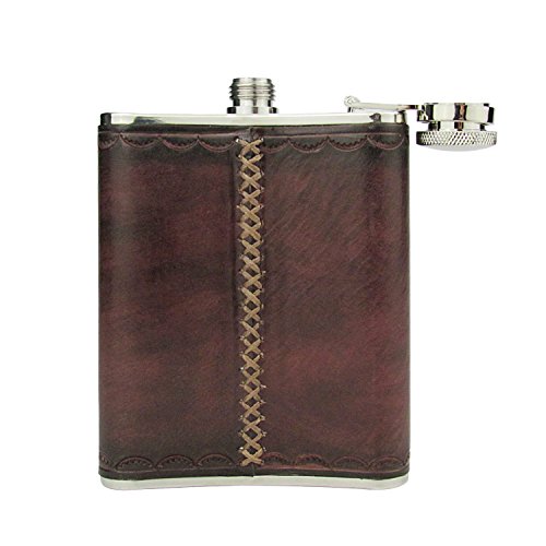 Tourbon Hunting Vintage Leather and Stainless Steel Hip Flask 6OZ