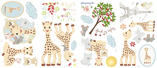 Decorate your nursery with Sophie la giraffe peel and stick wall decals from Roommates decor. Featuring four playful scenes of Sophie la giraffe, add these adorable wall decals to any smooth, flat surface. Plus, Roommates wall stickers are removable, reusable and repositionable allowing you to simply peel from the wall as your little one grows.
