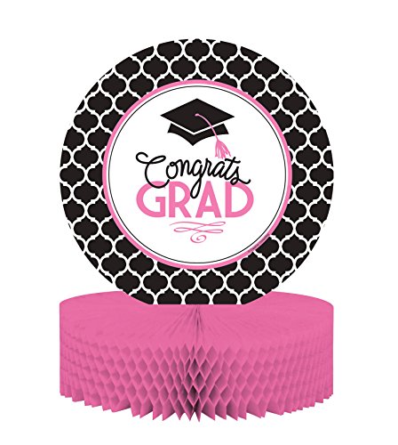 Creative Converting Centerpiece with Honeycomb Base and Glamorous Grad Collection, Black/White/Pink