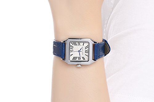 -. Feature : ACCURATE TIME KEEPING and KEY SCRATCH RESISTANT WATCH FACE. Imported CITIZEN Quartz Movement provides precise and accurate time keeping. No more key scratches with the high hardness mineral glass watch face. / SPECIAL DIAL DESIGN WITH ROMAN NUMERALS AND BLUE WATCH HANDS. FASHION AND CASUAL, AN GOOD COMPANION FOR YOU. Elegant leather band strap, bring you classic and casual simplicity fashion. Beautiful and stylish zinc alloy shell, along with the little shinning rhinestone on the Crown, noble and prestige outlook makes you the high-profile star in all occasions. / WATERPROOF FOR DAILY USE: 65 FT waterproof (20 M). Perfect for all kind of business, casual, indoor activities and daily use. Hand wash, rain day, sweating, no problem! NOTE: Please DO NOT pull out the button under the water. Too much water contact or usage in extreme Hot or Cold temperature will damage leather band and shorter watch life. / DURABLE with COMFORT: the leather watch band is smooth and breathable. It won't let sweat stay. And the convenient buckle selects stainless steel material. It is convenient and beautiful. / PRECISE TIME KEEPING: Imported Japanese quartz movement, we can guarantee that there will be no errors in 2 years. Let you count every minute and second