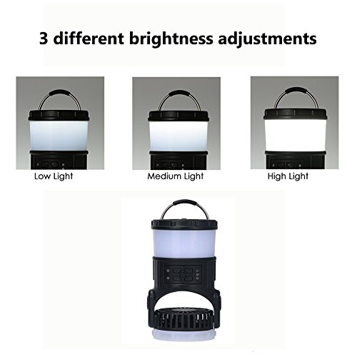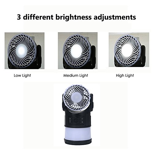2 Lights. Each of the two lights has 3 different brightness adjustments. Low / Medium / High Light. Light by the fan that you can use like a flashlight when moving.