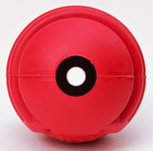 Ultra-durable solid rubber retrieving ball dog toy with dental ridges and cored center to insert treats. Excellent for even the most aggressive chewers. Designed for dogs 35-90 lbs