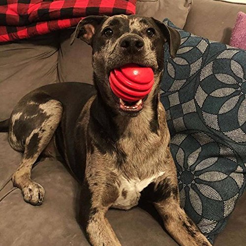 Stimulating and entertaining for dogs with its unique design and dental ridges. The solid natural rubber design provides strength yet enough give to hold up while still stimulating their chompers.