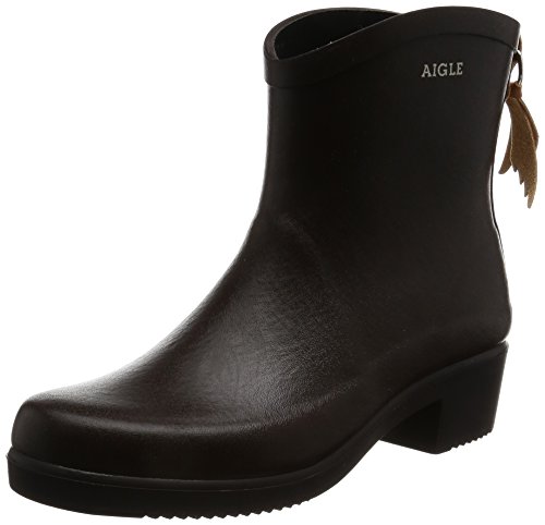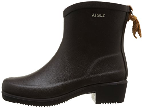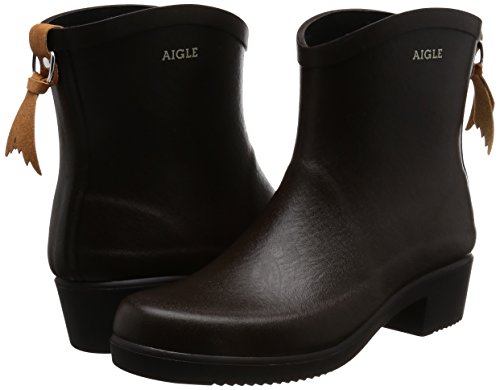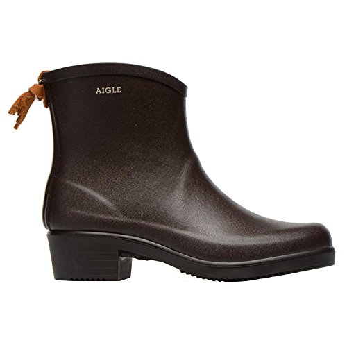 Studio : Aigle Publisher : Aigle Binding : Apparel Product Description Miss Juliette Bottillon by Aigle are the high quality Wellies which have been handcrafted in France by the master rubber shoe makers. The tradition and know-how have been combined in this beautiful low ankle, rain boot which comes in versatile brown and has the eye-catching, leather finish on the back of the shaft. Polyamide textile lining is quick drying and allows you to slide the foot easily into the shaft. Moisture absorbing, foam Softex insole cushions feet. This Wellington boot is Eco friendly and has been created from the natural rubber called Gomma Plus, which makes this product extremely flexible and allows it to endure even the coldest temperatures. The 5.5 inch tall shaft sits on the 1.5 inch heel and vulcanisation process has been used to secure durability of this rainproof ankle shoe. 0