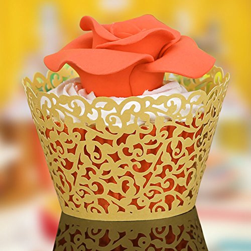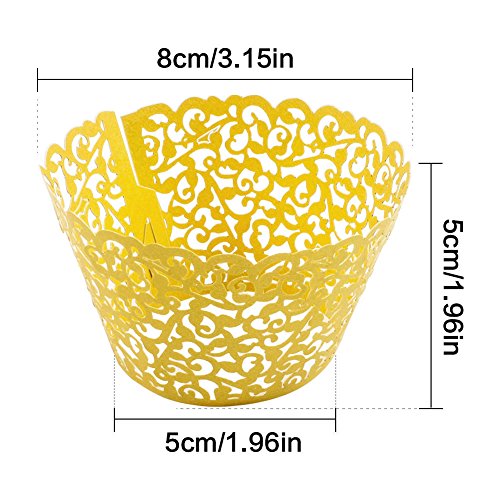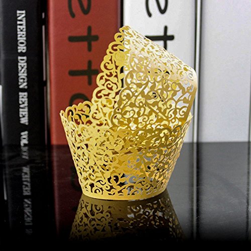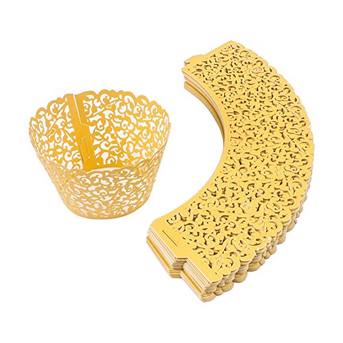BUTEFO 50 Pcs Cupcake Holders Hollow Carving Decor Wrapper Wraps Cupcake Muffin Paper Holders (Gold)