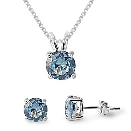 -. Title : Simulated Aquamarine Sterling Silver Necklace & Earrings Set