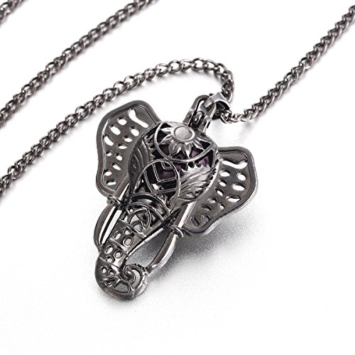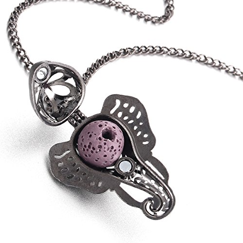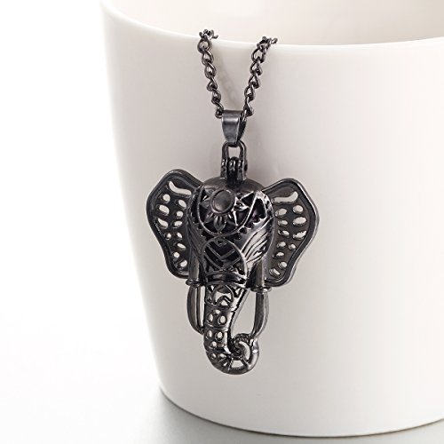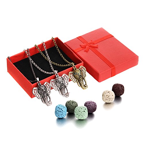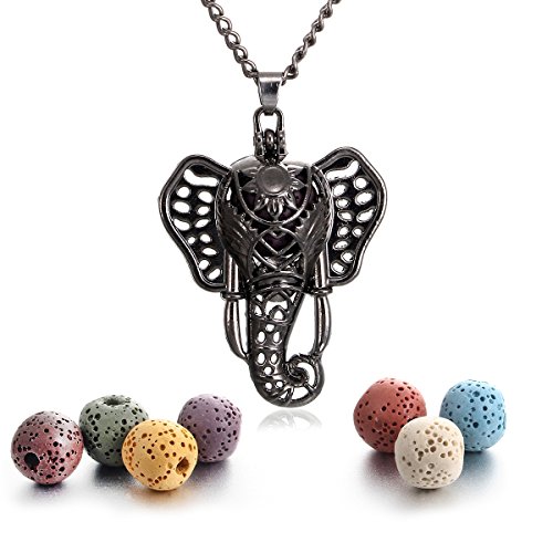 Lucky Elephant Lava Rock Aromatherapy Necklace Essential Oil Diffuser Necklace Bohemia Locket Pendant, Come with 24" Chain, Multi-Colored Lava Stone...