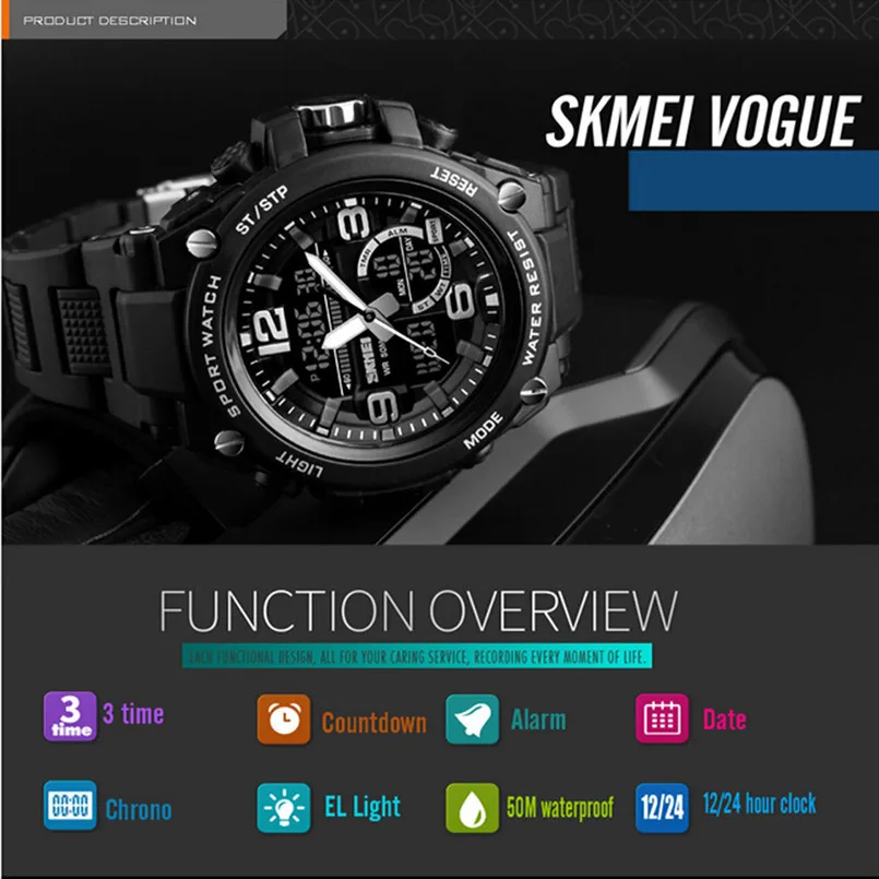 Feature:Back Light,Auto Date,Chronograph,Water Resistant,Alarm,Week Display