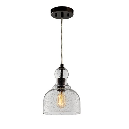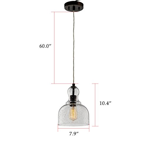 CO-Z One-Light Bronze Pendant Ceiling Hanging Light with Hand Blown 8" Clear Bubble Glass Shade for Kitchen and Dining Room, UL listed