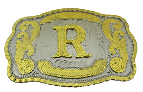 Product DescriptionInitial Letter " R " Name Monogram Gold and Silver Tone Belt Buckle0