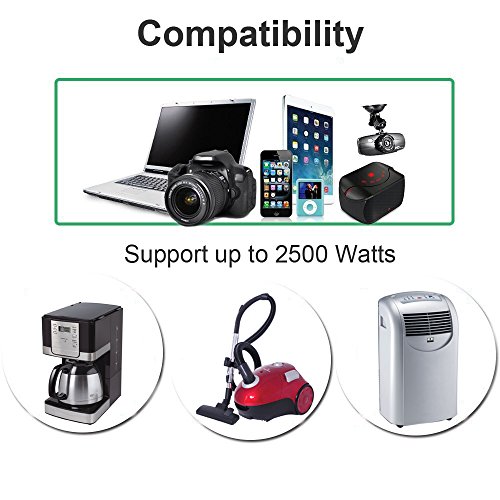 - *COMPATIBILITY* 4 Interchangable plugs make it possible to power your DC devices wherever and whenever in EU, UK, AU, US. And 2500W surge power design, no need to worry about to use hairdryer, cooker and other household electrical appliances.