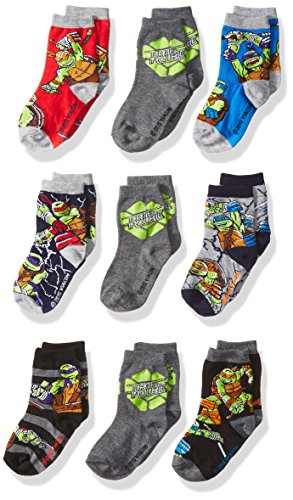 -. Binding : Apparel -. Brand : Nickelodeon -. Department : boys -. Feature : Sock sizes 5-6.5 fit shoe sizes 4-7.5 / Get 9 different pairs in one set -. Label : High Point Children's Apparel -. Manufacturer : High Point Children's Apparel -. Model : 415400 -. PackageQuantity : 1 -. ProductGroup : Apparel -. ProductTypeName : SOCKSHOSIERY -. Publisher : High Point Children's Apparel -. Studio : High Point Children's Apparel -. Title : Teenage Mutant Ninja Turtles Boys' Tmnt 9Pk Crew Bundle