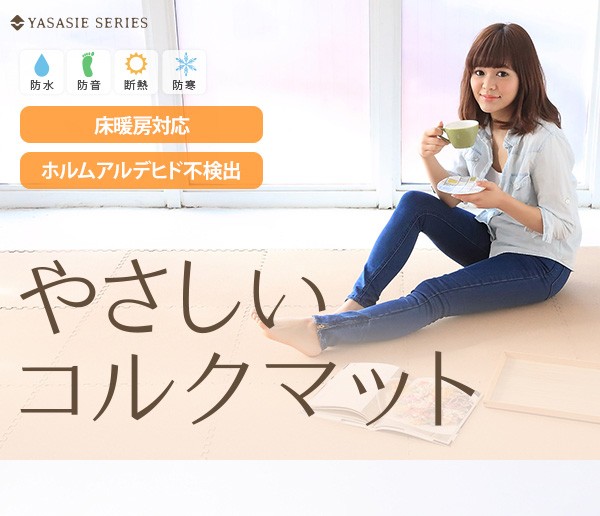 フローリングが多くなってきている日本の住宅事情。フローリングが傷ついたり、小さなお子様が転んでケガをしたり、心配は尽きないですよね?そんな悩みを、今回紹介する「やさしいコルクマット」で解決!!表面のコルクマットと裏面のEVAで防音性、クッション性に優れています。立ち仕事でも疲れにくく、キッチン、脱衣所、リビングなど立ち仕事が多い場所での利用にもピッタリなんです!