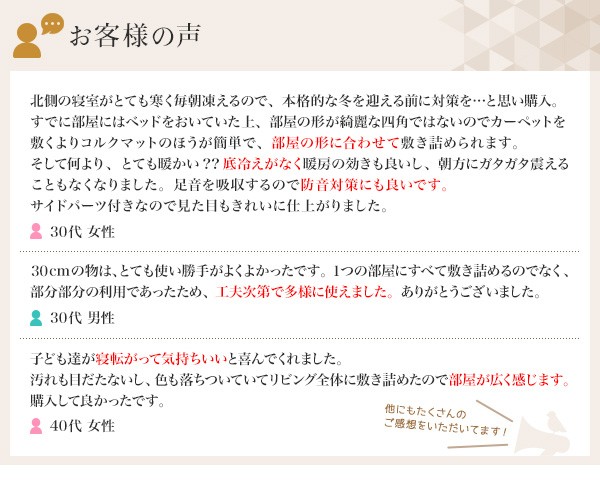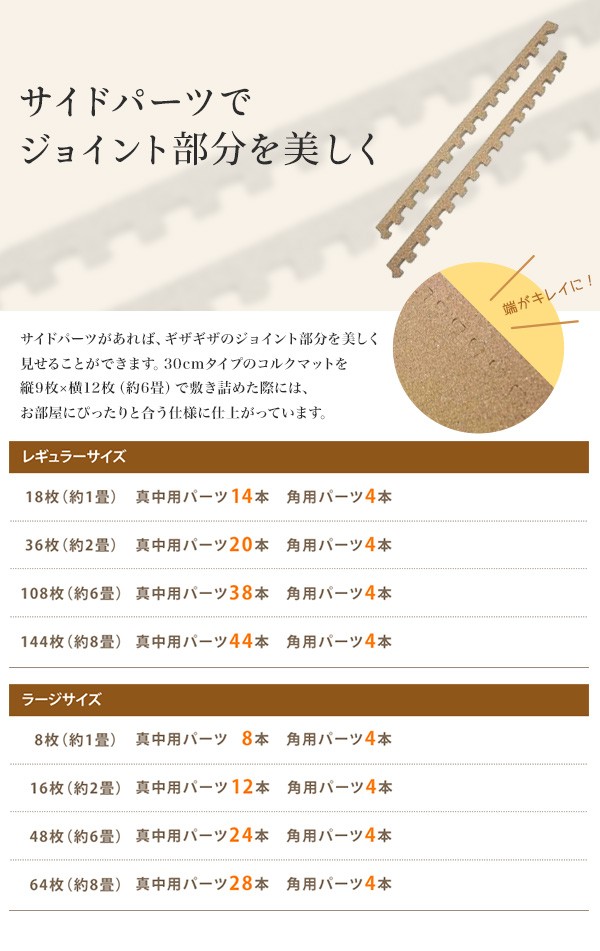 別売のサイドパーツを使うことで、ジョイント部分のギザギザがカバーされスッキリ敷くことができます。本体と合わせてサイドパーツを購入されることをおすすめします。(同サイズのものをご利用ください)