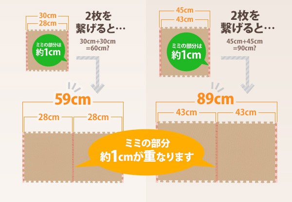 1辺:約30cm/約厚さ8mm(コルク約1mm、EVA約7mm)