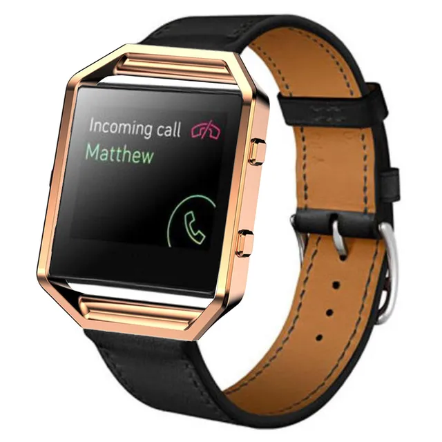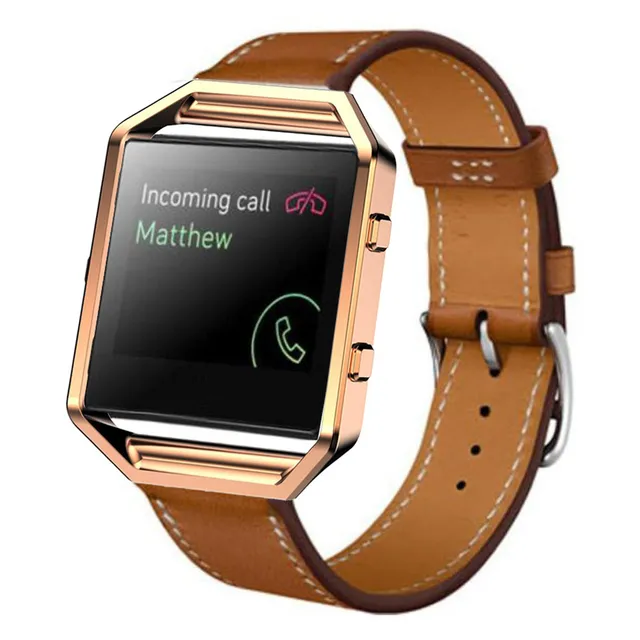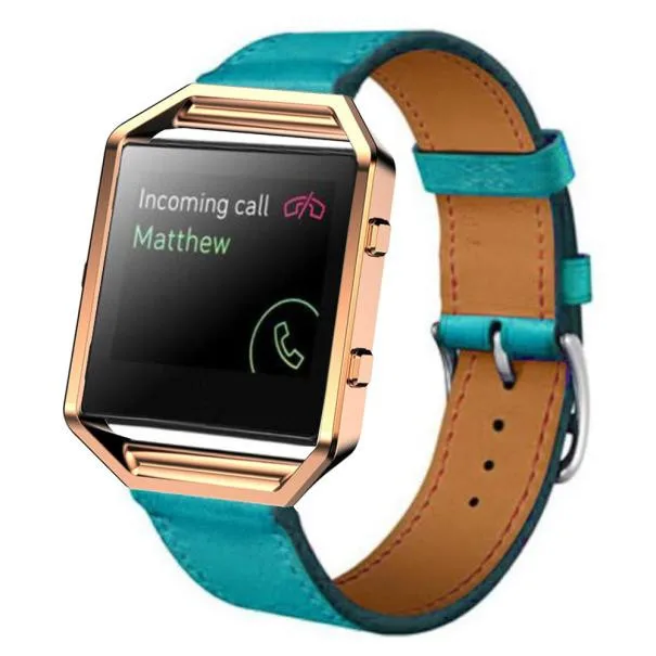 고급 정품 가죽 시계 밴드 손목 스트랩 + 금속 프레임 핏 비트 블레이즈 스마트 시계