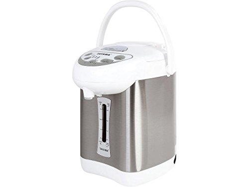 The 3-Quart Hot Water Thermo Pot/Water Heater from Tayama keeps hot water at your fingertips throughout the day- with no waiting. It quickly brings water to a boil and keeps it piping hot for hours-so you can enjoy your tea, hot chocolate, coffee, hot cereal or soup at a moment's notice. Pour anywhere with the manual pump or use the automatic dispenser for easy, one-handed serving. The Hot Water Thermo Pot sets to 3 different temperature options, perfect for a variety of hot beverages. The Delay Start option powers down when no one is home and will have water hot again right when it's needed. Built with safety in mind, this appliance features a cool-touch exterior, safety locking lid and detachable cord.Feature