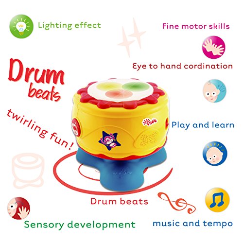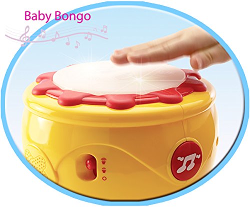 Your child can rock out and learn with the isee toys unique design baby bongo.Toddlers can play along to tap 5 melodies in styles including different drum effects.When kids hit the drum follow-Along each drum features with unique sound and lights. Your child to feel like a real drummer to create a song giving them the chance to explore the wonderful world of rhythm and tempo. With a colorful and appealing design, children will enjoy their baby bongos again and again. 3xAA batteries (included). Suitable for for toddlers aged 12 months to 5 years old especially educational toys for 1 year oldFeature