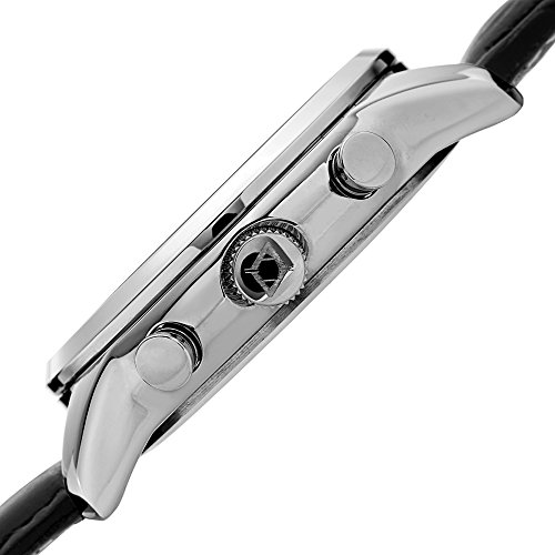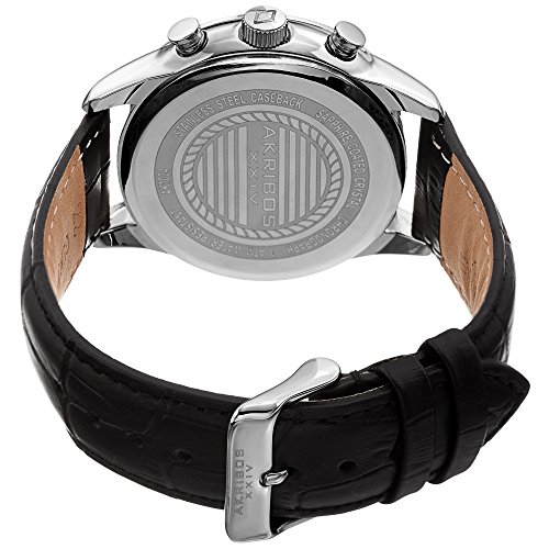 -. Title : Akribos XXIV Men's Quartz Chronograph Silver-Tone/Blue & Black Leather Strap Watch - AK1004SSBK