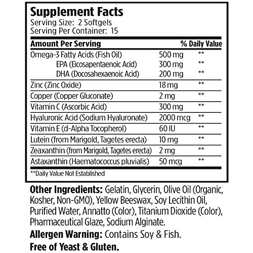 RESULTS YOU CAN FEEL OR YOUR MONEY BACK! Formulated using only 100% natural eye nourishing supplement primarily containing Omega-3 fish oil, vitamin D3 and vitamin E. Non GMO and formulated without fillers, synthetic ingredients, gluten or yeast.