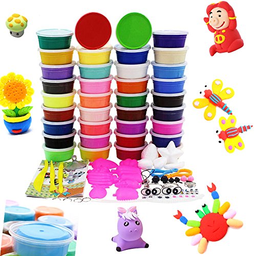 ❤PACKAGE LISTING-36×Magic Clay, 3×Tools, 5×Polyfoam Balls, 10×Noses, 20×Eyes, 3×Keychains+Ring, 8×Fishbones+Keychains, 9×Fruit Mould, 2×Suckers, 6×Hanging Rings.