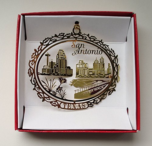 San Antonio Texas Brass Christmas Ornament Souvenir Gift River Walk City Skyline