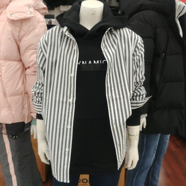 블랙과 화이트의 스트라이프가 시크한 디자인의 셔츠입니다.특별한 남녀의 구별 없이 입을 수 있는 디자인입니다.얼마든지 자유롭게 코디할 수 있는 셔츠입니다.