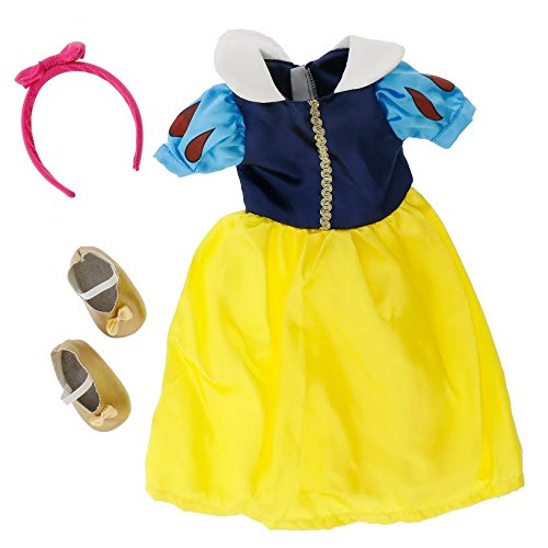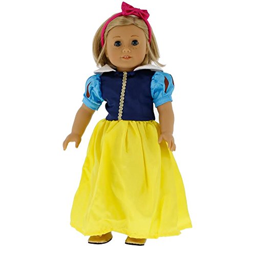 Snow White Inspired Doll Clothes for American Girl Dolls: Stunning Princess Outfit By Dress Along Dolly (Includes Dress, Headband, and Shoes): From the makers of the best selling Ride Along Dolly Bike Seat comes a line of doll clothes that will make your favorite American Girl or comparably sized dolls' heart melt. Dress Along Dolly Clothes are all hand made, and custom designed to give your doll the unique look that you want. You won't find these clothes in any store. These are truly unique designs exclusive to Dress Along Dolly. Show off your doll in style. Fits any standard doll of approximately 18" in height, including American Girl Dolls.Feature