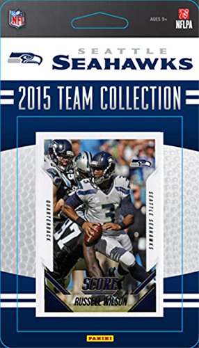 Seattle Seahawks 2015 Score NFL Football factory sealed 12 card team set including Earl Thomas, Kam Chancellor, Richard Sherman, Bobby Wagner, Russell Wilson, Marshawn Lynch, Robert Turbin, Doug Baldwin, Jermaine Kearse, Jimmy Graham plus rookie cards of Austin Hill and Tyler Lockett.