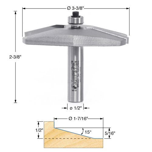 Amana Tool 54117 15-Degree Traditional Raised Panel 3-3/8-Inch Diameter by 1/2-Inch Cutting Height by 1/2-Inch Shank Router Bit
